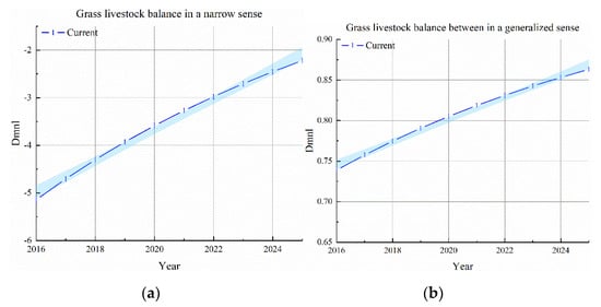 Simulation results of generalized grass-livestock balance and planting-breeding balance under scenario 3. (a) Grass-livestock balance in a generalized sense; (b) phosphorus balance carrying capacity.