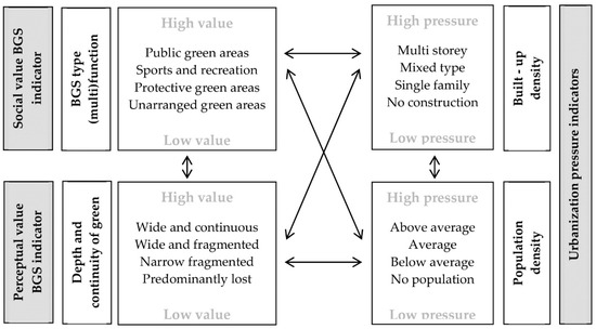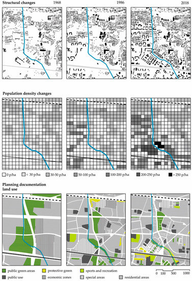 A qualitative analysis seeks to determine the impact of landscape changes on the quality of life, which in urban planning largely depends on green space distribution, its (multi)functionality and spatial arrangement in accordance with population density. Therefore, to make a quality evaluation of stream landscape change more sensitive to urban context features, an additional four parameters were observed: