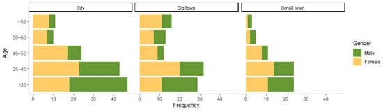The final sample of 304 consumers was distributed in the three municipalities mentioned, with 44% of the sample belonging to the city of Girona, 34% to the town of Torroella (Big town), and 22% collected in La Bisbal (Small town) (Figure 2). From the total sample, 55% were females whereas in terms of age groups, the sample distributed in 32.9% of individuals below 35 years old, 32.6% between 36 and 45 years, and 34.5% above 45 years old.