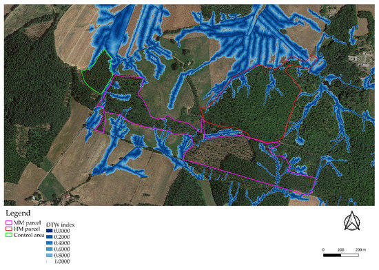 DTW maps have been applied and tested in a Boreal climate for the prediction of perennial streams, wet or water-saturated areas, and sensitive areas for ground-based trafficking [25,26,27,28]. These instruments are well-established in the Boreal climates and are assumed to be good predictors of soil moisture conditions [27,29].