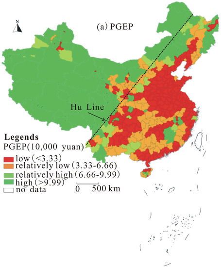 Spatial distribution characteristics of the PGEP and PGDP in the Chinese mainland.