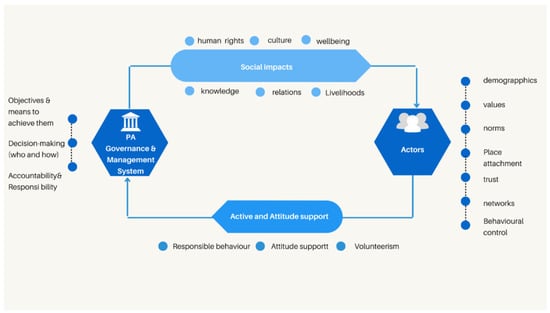 Actors are a key part of this holistic approach, having a significant role in the policy process. McGinnis and Ostrom [] provided a useful definition of actors in the context of protected areas as ‘individuals who use the park in diverse ways for sustenance, recreation, or commercial purposes’. According to this definition, local residents who use the area for sustenance, recreation or commercial purposes are key users affected by the designation. When reviewing existing studies, focusing on what determines public support by local communities for environmental policies, we identified six broad categories of explanatory factors: social capital, values, norms and behavioural control, place attachment, social impacts and socio-economic attributes.