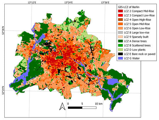 - Muhammad, F.; Xie, C. WUDAPT Level 0 Training Data for Berlin (Germany, Federal Republic of) 2022, Submitted to the LCZ Generator. This Dataset Is Licensed under CC BY-SA. Available online: https://lcz-generator.rub.de/factsheets/d696992a4762392aff2fd540d269705fb247ea6f/d696992a4762392aff2fd540d269705fb247ea6f_factsheet.html (accessed on 17 March 2022).