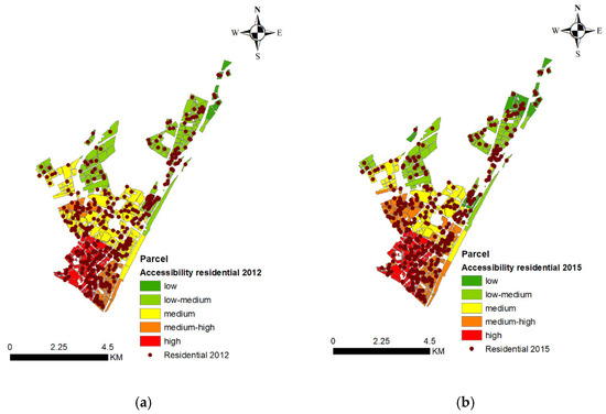 - The developed multimodal transport model was used to calculate accessibility to residential, commercial, and mixed land-uses at the parcel level for the years 2012 and 2015;