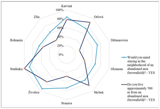| Do you live approximately 500 m from an abandoned area (brownfield)?—YES | 78% | 89% | 30% | 42% | 85% | 48% | 75% | 100% | 56% | 40% | 743 | 64% | |