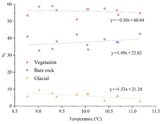 Figure 6. The proportional relationship between landscape categories and mean annual temperature in Sobchaye.
