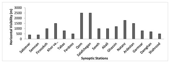 Minimum horizontal visibility diagram of some synoptic stations in the study area on 19–21 July 2015.