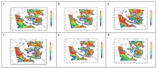 Model domains, parametrization, initial and boundary conditions used the same settings and input data as previously [] (Table 1). Also, The model was run at a distance of 27 km. To simulate the investigated storms, the model was run starting 24 h before the storm, and the first 3 h of the run were discarded as spin-up time.