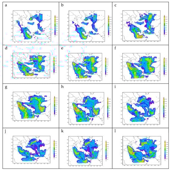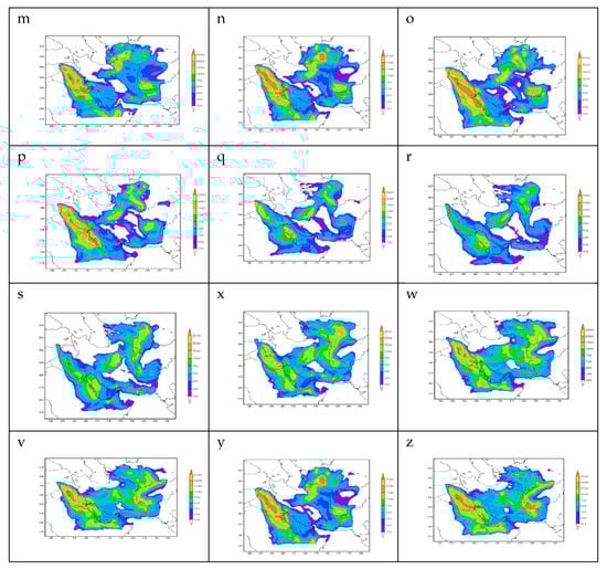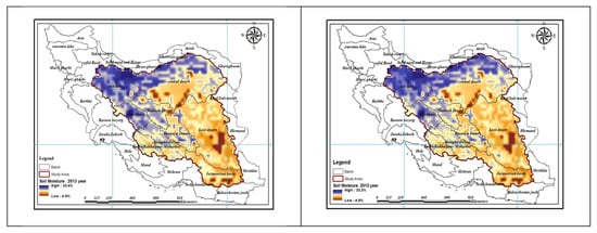 The GLDAS analysis database with spatial resolution of 0.1° was used to study the spatial pattern of soil moisture. The reanalysis data were downloaded from GLDAS in netCDF format and converted to raster format in ArcGIS software to map the soil moisture change pattern in the study area (Figure 9).