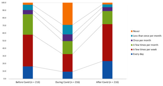- Ugolini, F.; Massetti, L.; Calaza-Martinez, P.; Cariñanos, P.; Dobbs, C.; Ostoic, S.K.; Marin, A.M.; Pearlmutter, D.; Saaroni, H.; Šaulienė, I.; et al. Effects of the COVID-19 pandemic on the use and perceptions of urban green space: An international exploratory study. Urban For. Urban Green. 2020, 56, 126888. [Google Scholar] [CrossRef] [PubMed]