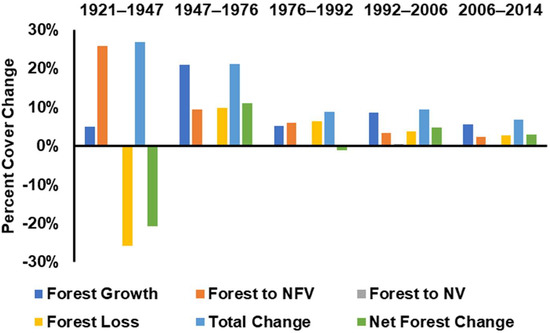 Forest and non-forest vegetation were dynamic from 1947 to 2014, with an average of nearly 1% (0.5–0.8%) annual relative change over this 67 year period (