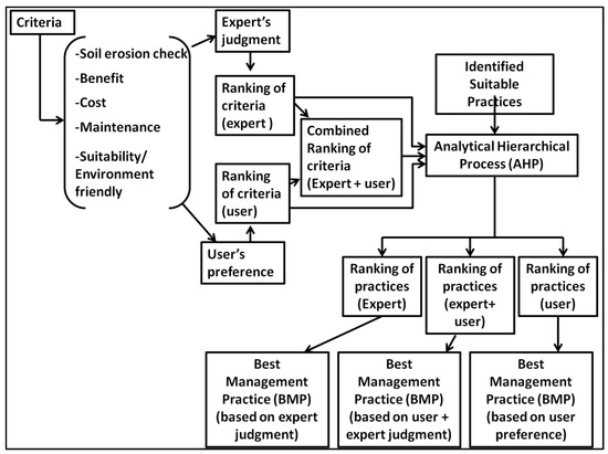 Alam, N.M.; Jana, C.; Mandal, D.; Meena, S.K.; Shrimali, S.S.; Mandal, U.; Mitra, S.; Kar, G. Applying Analytic Hierarchy Process for Identifying Best Management Practices in Erosion Risk Areas of Northwestern Himalayas. Land 2022, 11, 832. https://doi.org/10.3390/land11060832