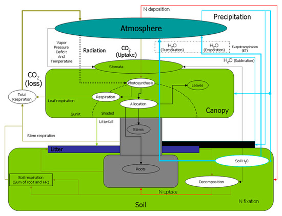 - Biome-Bgc Flow. Available online: http://www.ntsg.umt.edu/project/biome-bgc.php (accessed on 17 May 2022).