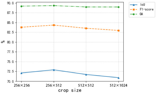 In this study, five evaluation indexes were selected to evaluate the performance, including Precision, Recall, the intersection over union (IoU), F1-Score, and overall accuracy (OA). The precision indicated the proportion of the true UCGS to all the UCGS identified by the model, representing the model’s accuracy. In contrast, the recall indicated the proportion of the true identified UCGS to all the UCGS in the given samples, reflecting the model’s capability of discovering the true UCGS. IoU is the ratio of the intersection and the union of the ground truth and the predicted area. F1-Score, also known as the balanced score, is defined as the harmonic average of precision and recall rate. It is a common evaluation index for semantic segmentation. Overall Accuracy (OA) is a comprehensive evaluation index of classification results and represents the probability that the classification result for each pixel is consistent with the actual type of the label data. These evaluation metrics are computed between the predicted UCGS and the ground truth. The calculation equations for the indicators are shown in Table 2.