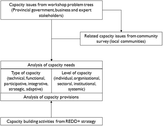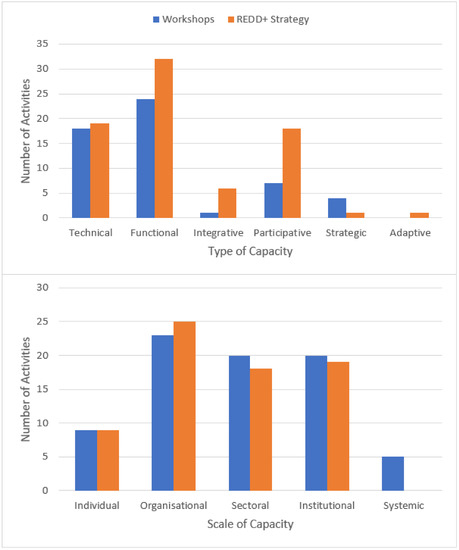 - We classified the scale and type of capacity needs identified by the problems in the problem tree and activities in the REDD+ strategy according to the framework discussed above (see Supplementary Information, Table S7, for full analysis). Note that any awareness raising activity was classified as participative capacity building, even though it is considered low-level participation [54].