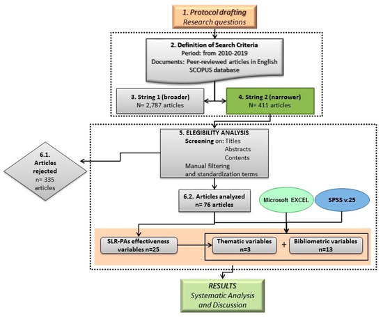 Systematic literature reviews (SLRs) are recognized as a useful tool for ascertaining the state of the art in a given field of research [1]. Typically, SLRs are conducted following a predefined protocol [2,3] where the criteria are explicitly stated before the review is conducted. The search terms and strategies are specified, including the names of the databases and the search period. Pittway [4] outlines seven key principles behind SLRs: transparency (i), clarity (ii), integration (iii), focus (iv), equality (v), accessibility (vi), and coverage (vii). SLRs are regarded as a standardized method for literature review that is replicable, transparent, objective, unbiased and rigorous, and therefore superior to other approaches for conducting literature reviews [5,6].
