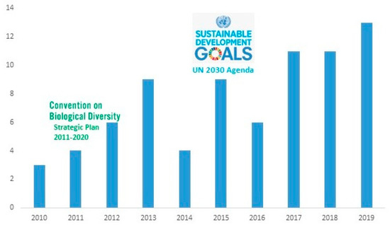 - CBD. COP 10 Decision X/2: X/2. Strategic Plan for Biodiversity 2011–2020. 2010. Available online: https://www.cbd.int/decision/cop/?id=12268 (accessed on 31 January 2022).