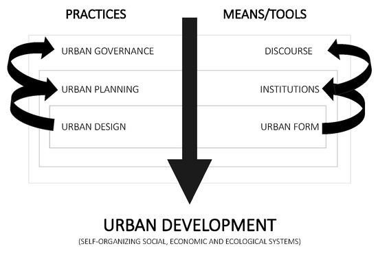 While institutions are non-material and invisible forms of governance tools, they frame urban form in a multitude of ways, such as through legally binding development plans, building codes, property-rights, land-use restrictions, as well as national and international conventions, treaties, and targets. Moreover, models for urban design, such as the smart-growth model and the biotope area factor (BAF), represent powerful normative and informal types of institutional design frameworks that influence how cities are built and configured. In this way, institutions are mediators of public norms, policies, and discourse, and they need, therefore, to be flexible, inclusive, and be able to respond and adjust to new social and environmental conditions and circumstances [2]. Central here is for the urban policy discourses to inform the design of both institutions and urban form in such a way that they support each other rather than, as is often the case today, contradict each other.