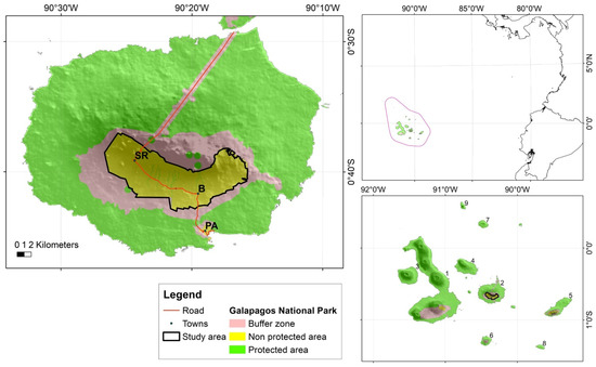 - Walsh, S.J.; Mena, C.F. Perspectives for the Study of the Galapagos Islands: Complex Systems and Human–Environment Interactions. In Science and Conservation in the Galapagos Islands. Social and Ecological Interactions in the Galapagos Islands, 1st ed.; Walsh, S., Mena, C., Eds.; Springer Nature Switzerland AG: Cham, Switzerland, 2013; Volume 1, pp. 49–67. ISBN 9781461457930. [Google Scholar] [CrossRef]