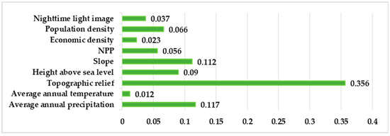 PLES evolution is a major cause leading to eco-environmental quality changes [80], and this paper focuses on the factors influencing the eco-environmental quality of the QTP from both natural ecological and socioeconomic dimensions. For the natural environmental factors, the QTP is in the main complex and diverse topography, with large differences in temperature and precipitation among districts and counties. Its ecological distribution is mostly influenced by precipitation, temperature, and elevation, and average annual precipitation, average annual temperature, and height above sea level are used as evaluation indexes in this paper; furthermore, NPP reflects the productivity of vegetation and has a direct effect on eco-environmental quality. Topographic relief and slope affect human activities, and thus, change land-use patterns that indirectly affect eco-environmental quality. Therefore, average annual precipitation, average annual temperature, height above sea level, topographic relief, slope, and NPP are used as natural ecological factors in this paper.