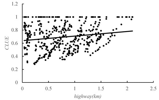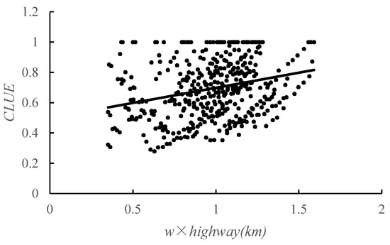 Scatter diagram of the linear fitting between highway density and CLUE.