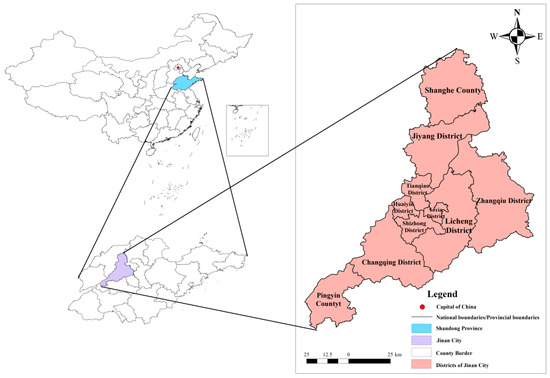 Location and zoning map of Jinan City.