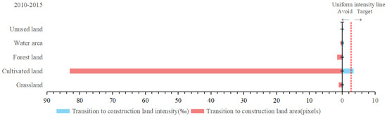 Intensity analysis for transition to construction land based on the observed gains, 2010–2015.