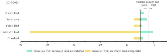 Intensity analysis for transition from cultivated land on the observed losses, 2010–2015.