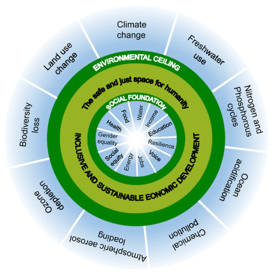 2], developed the notion of a doughnut economy, in which she argued that, next to these planetary boundaries, we also need to take into account a “social foundation” that covers the basic needs of humanity (