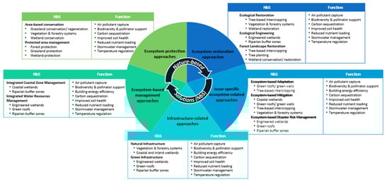 NbS categories and general examples established by the IUCN, are connected to a series of specific NbS and associated functions [8,50,62,63,75,96].