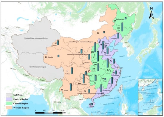 In addition, in order to explore the regional differences in the causal pathways of land transfer decisions, this study divides the samples into three groups, the eastern, central, and western regions, according to natural, economic, social, and regional conditions. Among them, the eastern region has a flat terrain, rich aquatic and mineral resources, good agricultural production conditions, and strong economic vitality. Covering many plains, the central region is a major producer of grains and is rich in mineral resources and coal reserves, allowing the rapid development of heavy industry. The overall terrain in the western region is relatively high, and it involves plateau, desert, grassland, basin, and other landforms. Due to its long periods of cold weather, water shortages, and late development, its economic development and social governance levels are relatively lagging behind. According to the regional division, there are 653, 771, and 655 households in the eastern, central, and western regions, respectively (Figure 2).