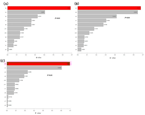 Figure 7. Results of factor detection (A) 2000, (B) 2010, and (C) 2020. (p-values less than 0.001 for all factors).