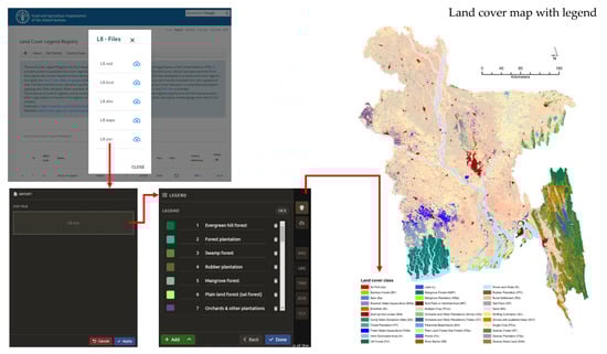 The availability of land cover datasets is as important as the development of datasets. There are several organizations and countries that have developed and are developing land cover datasets for different purposes and using different approaches and supporting documents. In most cases, land cover legends have limited documentation and the land cover legend registry provides only land cover legends that have been prepared using LCCS3. For example, the national land cover map for Bangladesh 2015 was prepared based on the LCML using the LCCS3 tool [,]. This interoperable system and the land cover dataset are used for a variety of applications including national forest resources assessment, estimation of REDD+ activity data, integration of biophysical and socioeconomic information, and semantic similarity assessment []. The land cover legend for Bangladesh is available in the registry along with a dataset and reference document. Moreover, land cover maps for Jordan [], Afghanistan [], and many others are also available in the registry. Therefore, a user can access existing and latest land cover datasets using this registry and can further use it for their purpose.