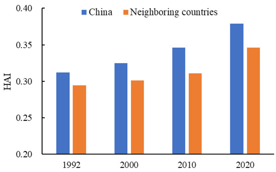 HAI changes between China and its neighboring countries.