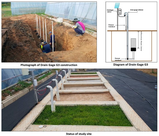 Photograph of Drain Gage G3′s construction, diagram, and status.