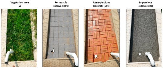 Hence, the infiltration rate was measured per sidewalk material (Equation (4)) and inserted in the modified rational formula to find a suitable runoff coefficient (C) used for the hydrological cycle interpretation according to the sidewalk material.