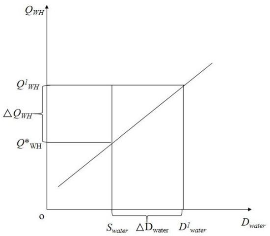 Ecosystem services are defined as the contribution of ecosystems to human wellbeing [1]. Among them, the supply of ecosystem services refers to the products and services provided by the ecosystem for human production. The demand of ecosystem services refers to the quantity consumed or expected by human beings [34]. Therefore, it is important to identify and balance the supply and demand of ecosystem services to maintain the sustainable development of the socio-economy and regional ecological security [35]. Therefore, on the premise of achieving balance between supply and demand of water yield service (Figure 1), the output of goods or services increased due to the excessive consumption of water in other regions can be calculated as follows: