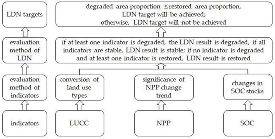 In September 2015, the United Nations General Assembly adopted 17 sustainable development goals, among which sustainable development goal (SDG) 15.3 was to “By 2030, combat desertification, restore degraded land and soil, including land affected by desertification, drought and floods, and strive to achieve a land degradation-neutral world”. Land degradation neutrality (LDN) refers to “a state whereby the amount and quality of land resources necessary to support ecosystem functions and services and enhance food security remain stable or increase within specified temporal and spatial scales and ecosystems,” and is used as a measure of SDG 15.3 [1,2]. In October 2015, a decision of the 12th session of the Conference of the Parties (COP 12) of the United Nations Convention to Combat Desertification (UNCCD) adopted this definition of LDN. Today, the definition has been widely recognized internationally [3], and as of March 2022, 129 countries have committed to setting LDN voluntary targets, and at least 84 countries, including China, have achieved their LDN target [4]. LDN is mainly evaluated using indicators recommended by the UNCCD, including land use/cover (LUCC), land productivity, and soil organic carbon (SOC).