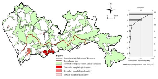 However, related concepts and measurement methods of urban spatial structures are still vague [,]. Most of the existing studies on urban spatial structures have focused on western cities, and the research on Chinese urban polycentric spatial structures is still in the preliminary stage. Although many studies have measured the polycentric urban spatial structure from the perspective of morphology, studies on functional connection between centers in a city are limited [,]. Investigations on the relationship between morphological and functional centrality are also lacking []. This study investigates the urban spatial structure of Shenzhen, a large Chinese city, to fill these gaps. This study analyzes the morphological distribution and functional connections of the employment spatial structure. The relations between the morphological and functional centrality of employment centers are further analyzed. Since it became the first special economic zone in China in the 1980s, Shenzhen has implemented polycentric urban planning for its urbanization. Urban planning and public policies have played important roles in the rapid development of the city. However, the extent to which the polycentric spatial structure has developed is unclear. A better understanding of the urban spatial structure of Shenzhen provides a useful reference for the development of other Chinese cities and basis for the formulation of future urban planning.