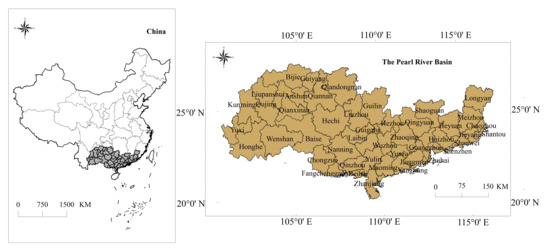 Low-carbon development is becoming a critical component in addressing the world’s environmental issues and climate change [1,2,3]. More and more countries have put forward carbon emission (CE) reduction strategies of “carbon peaking” and “carbon neutrality” [4]. As the world’s second-biggest economy and greatest carbon emitter, China faces great challenges in CE reduction [5,6]. In the year 2019, China’s CE accounted for 27% of total global emissions. Therefore, China is facing enormous pressure to decrease CE [7]. Based on this, China’s national 14th Five-Year Plan (2021–2025) formulates targeted CE reduction goals. Total CE and CE per unit of GDP will be reduced by 13.5 percent and 18 percent, respectively, until 2025, while forest coverage will rise to 24.1 percent. Based on such an emission reduction target, the Pearl River Basin (PRB), an area with an extensive development model, will face huge pressure in terms of CE reduction. How to successfully cut CE while ensuring long-term economic growth has become a fundamental concern in the PRB’s development.