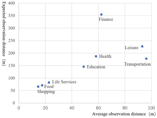Financial amenities had the lowest nearest neighbor ratio but the highest expected observation distance and middle average observation distance. This indicated that financial amenities were concentrated in the central urban area yet were scattered on a microscale. The nearest neighbor ratios, average observation distances and expected observation distance of the shopping, food, and life services amenities were relatively low, indicating that these amenities were concentrated on a small scale and scattered in the city. The nearest neighbor ratios, average observation distances, and expected observation distance of the health and educational amenities were at the medium level. Most large-scale health and educational amenities are planned and constructed by the government; therefore, the distributions of these amenities were relatively even. By contrast, small-scale health amenities such as pharmacies were concentrated in densely populated areas and were therefore spaced out within such areas to minimize competition. Training institutions were more likely to be clustered around schools. Therefore, health amenities were more concentrated in the central urban area than were educational amenities. On a microscale, the agglomeration radius of educational amenities was smaller than that of health amenities. The average observation distances of leisure and transportation amenities had the highest average observation distance. In addition, they really need to be more scattered both in the central urban area overall and on a microscale.