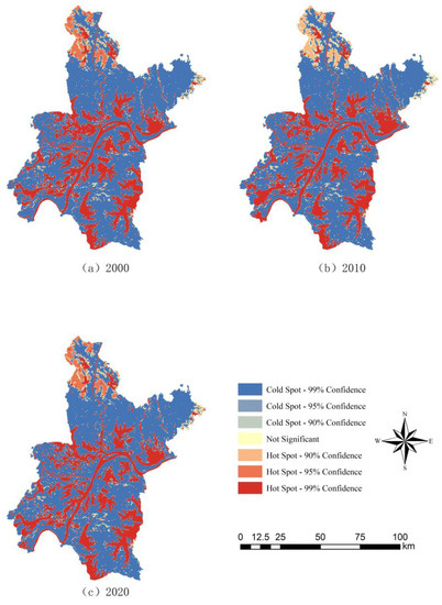 Hot spot analysis of ESVs in Wuhan during 2000–2020.