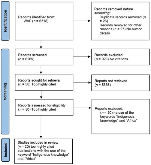 Malapane, O.L.; Musakwa, W.; Chanza, N.; Radinger-Peer, V. Bibliometric Analysis and Systematic Review of Indigenous Knowledge from a Comparative African Perspective: 1990–2020. Land 2022, 11, 1167. https://doi.org/10.3390/land11081167