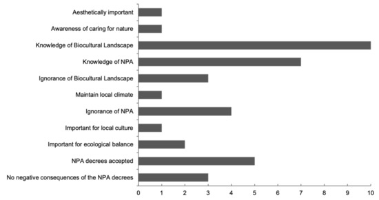 The responses about Conservation and knowledge were distributed in 11 groups (Figure 3).