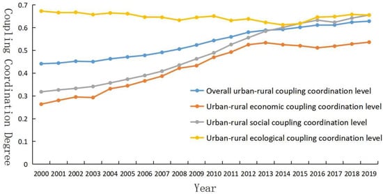 Urban–rural Coupling and Coordinated Development of Northeast China and the Changes of Various Dimensions.
