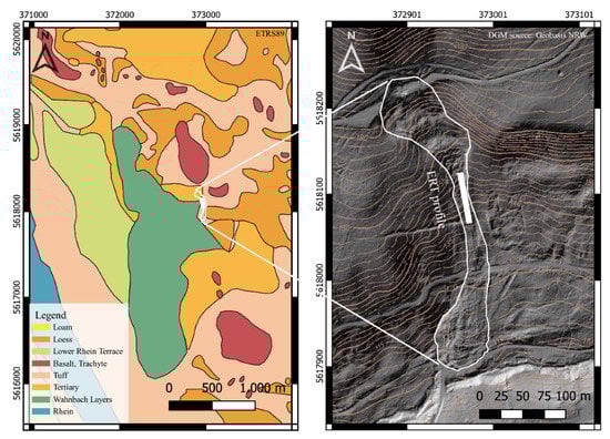 - Müller, L. Spezielle Geologische und Geotechnische Untersuchungen bei der Sanierung von Rutschungen im Nördlichen Siebengebirge; RWTH Aachen: Aachen, Germany, 1987; p. 234. [Google Scholar]