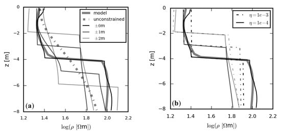 - Günther, T.; Rücker, C. A General Approach for Introducing Information into Inversion and Examples from DC Resistivity Inversion. In Proceedings of the Near Surface 2006—12th EAGE European Meeting of Environmental and Engineering Geophysics, Helsinki, Finland, 4–6 September 2006; pp. 1–4. [Google Scholar] [CrossRef]