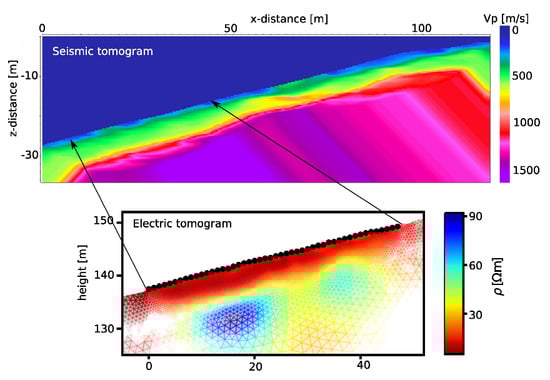 - Günther, T.; Rücker, C. A New Joint Inversion Approach Applied to the Combined Tomography of DC Resistivity and Seismic Refraction Data. In Proceedings of the 12th EAGE European Meeting of Environmental and Engineering Geophysics (Near Surface 2006), Helsinki, Finland, 4–6 September 2006; p. 039. [Google Scholar] [CrossRef]