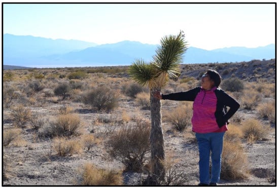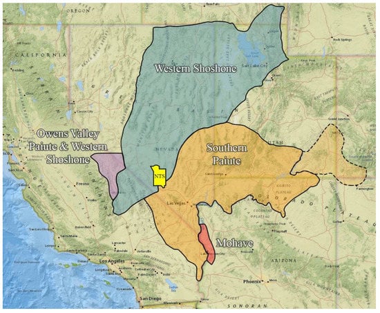 The authors of this paper each made significant contributions to the data on which it is based and its preparation. The background to the paper involves three decades of research involving university research teams head by R.S. and the 18 tribes who are culturally affiliated with the southern Nevada region. That initial cultural affiliation analysis was prepared by R.S. for the Department of Energy as part of the Yucca Mountain Nuclear Waste Repository proposal [87]. After that identification of cultural affiliation, various federal agencies began government-to-government consultation with the 18 tribes. The university-based research team was funded to facilitate 22 of these ethnographic studies. Data from those tribal and government approved studies have been used for tiering the present analysis. R.A. was spokesperson for the Consulting Groups of Tribes and Organizations (CGTO) throughout this period and has been instrumental in designing the research, reviewing the findings, and preparing the reports. Both R.A. and a committee of the CGTO are co-authors of this paper. K.V.V. worked during this time on many of these research projects, was an author of many technical reports and articles, and has been instrumental in the preparation of this manuscript. All authors have read and agreed to the published version of the manuscript.