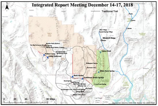 - Stoffle, R.; Sittler, C.; Johnson, C.; Kays, C.; Penry, G.; Pleshet, N.; CGTO Writers Committee. Nevada Test and Training Range, Nellis Air Force Base, Legislative Environmental Impact Statement; Native American Ethnographic Study; Department of Defense: Washington, DC, USA, 2019.